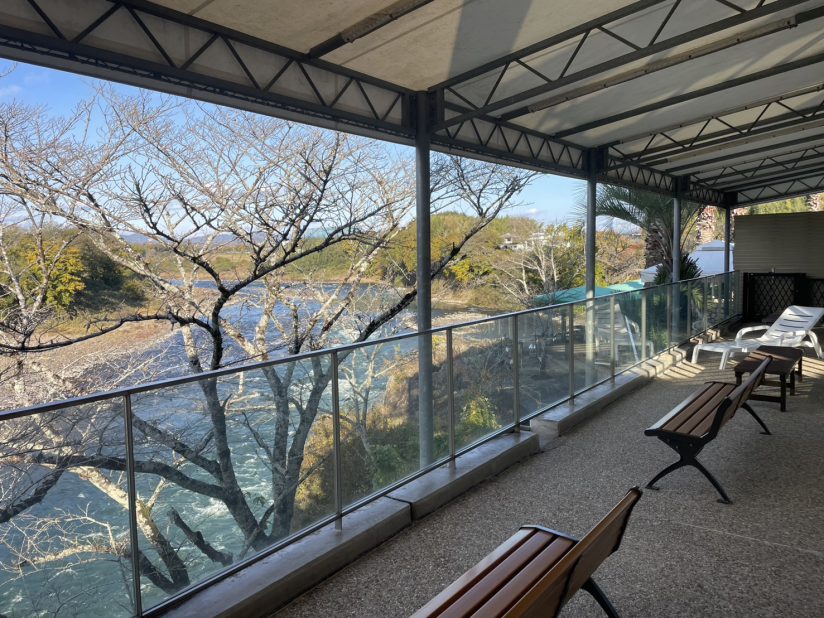 綺麗な川沿いの景色を見ながらの、最高の「整いタイム」です。