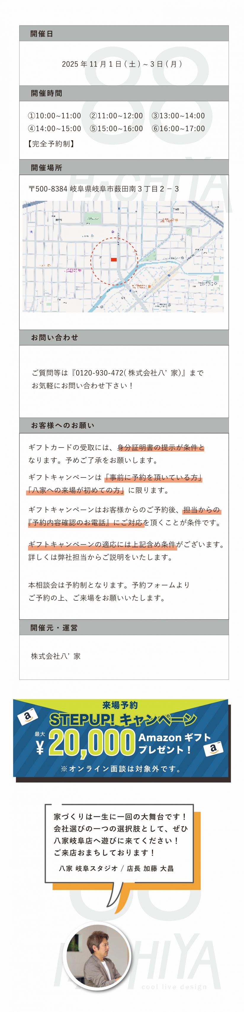 当日予約はお電話のみの対応となり、来場特典対象外となります。ご了承ください。