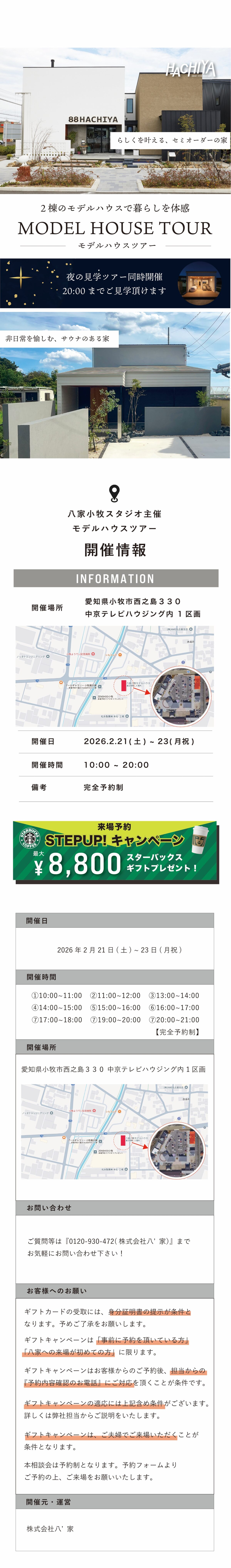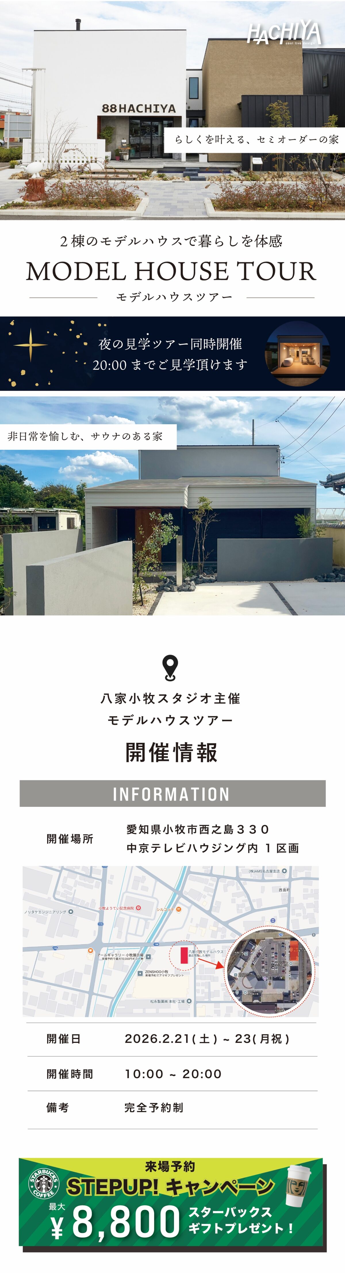 【HACHIYA小牧開催】2棟同時見学「モデルハウスツアー」