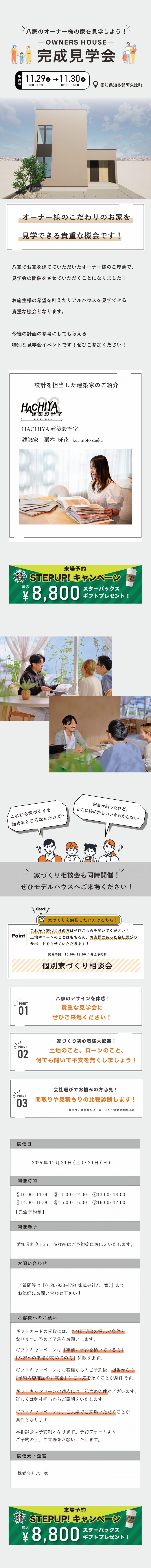 八’家 » EVENT » 【2日間特別開催!】オーナーズハウス「完成見学会」
