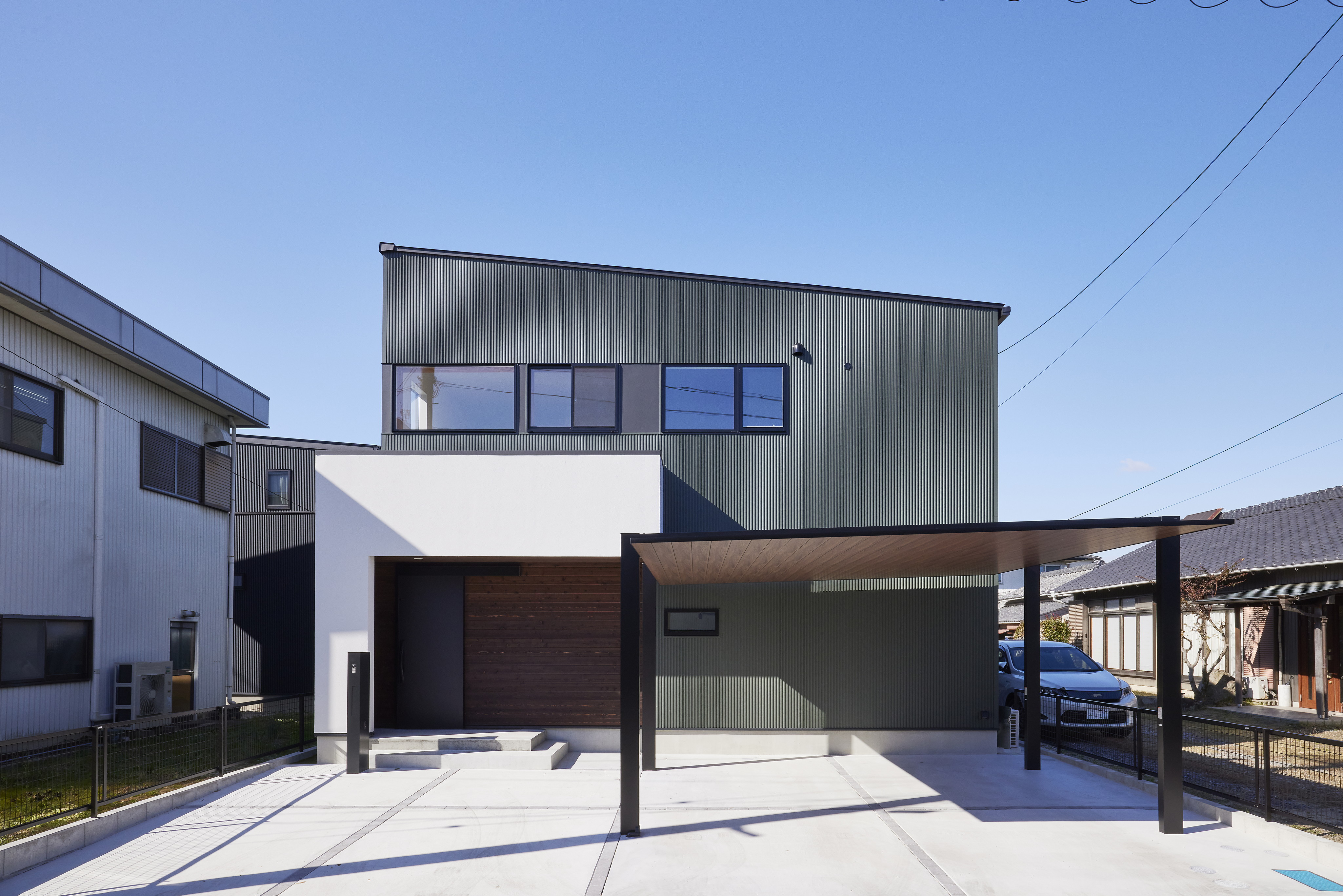 乾燥機がすっぽり収まるカウンターを造作し、使いやすいレイアウトに。
