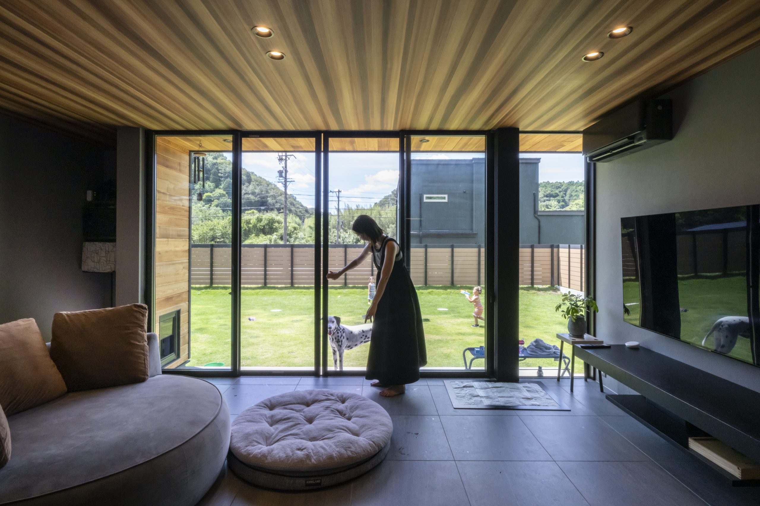 ペットドアも造作し、わんちゃんも自由に室内と外を行き来できます。