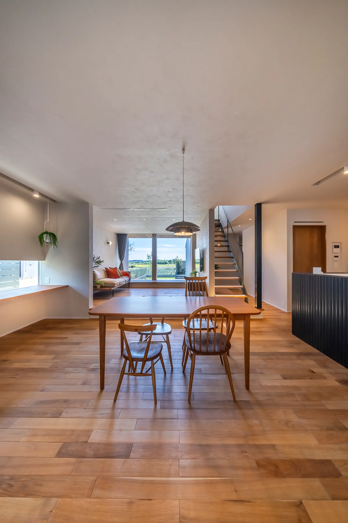 まるでリゾートのような外観デザイン。洗練されたインテリアで統一された広々としたLDKの奥には、間取りに組み込まれたプライベートサウナ。庭を活用した整いスペースもあり、まさにロマンを体現したモデルハウスです。